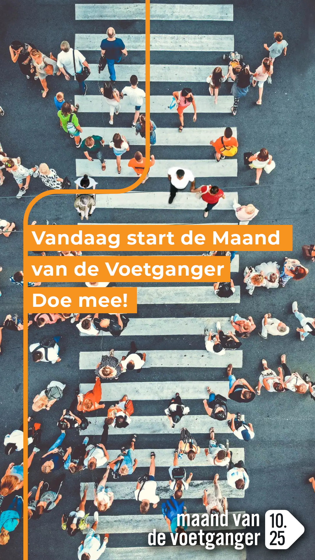 De Maand van de Voetganger gaat door in oktober 2025! Met deze visuals kan je de maand alvast bekend maken en oproepen tot actie. Vergeet zeker niet jouw initiatief met ons te delen via het formulier op de website.
